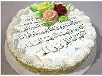 ما حكم وضع صورة المصحف وكتابة الآيات على تورتة عيد الميلاد