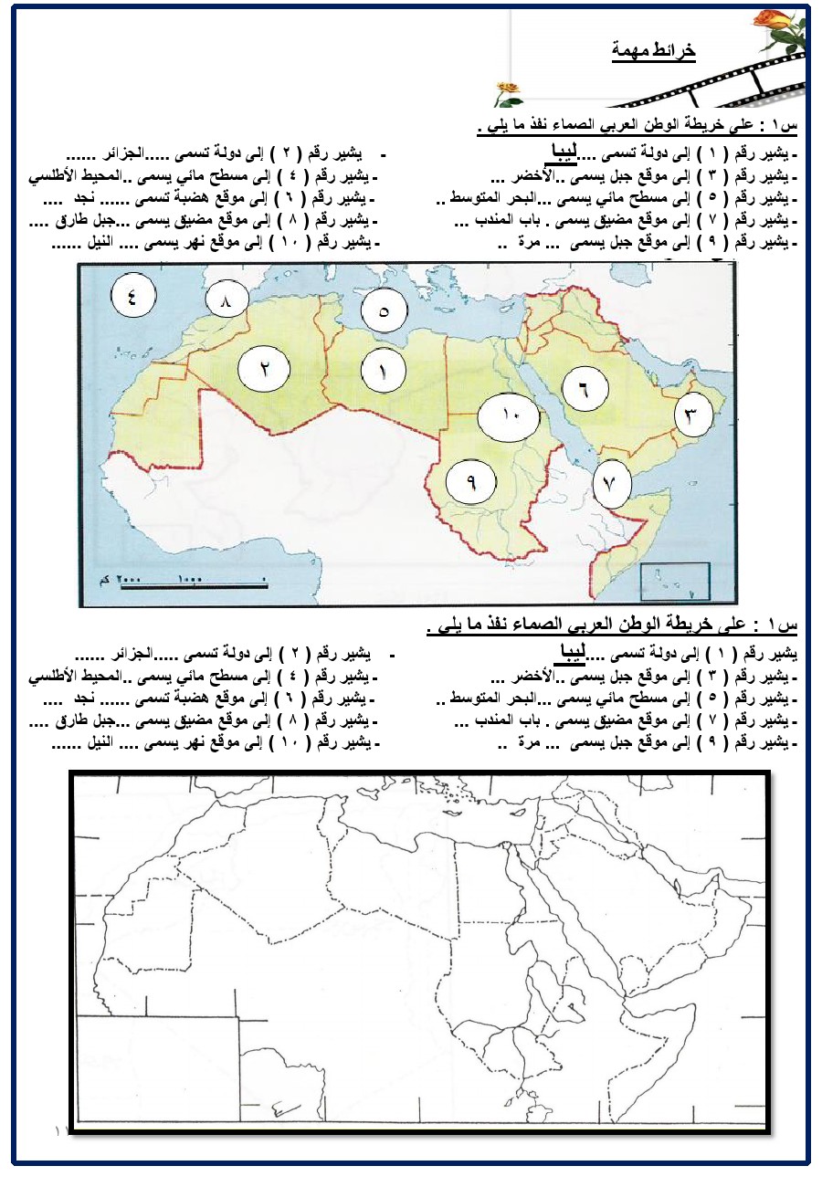 خريطة الوطن العربي صماء للصف الثانى الاعدادى