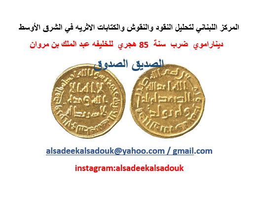 المركز اللبناني لتحليل النقود والنقوش والكتابات الاثريه في الشرق الاوسط دينار اموي سنة 85 هجري لعبد الملك بن مروان Umayyad Dinar Temp Abd Al Malik Gold Dinar 85h